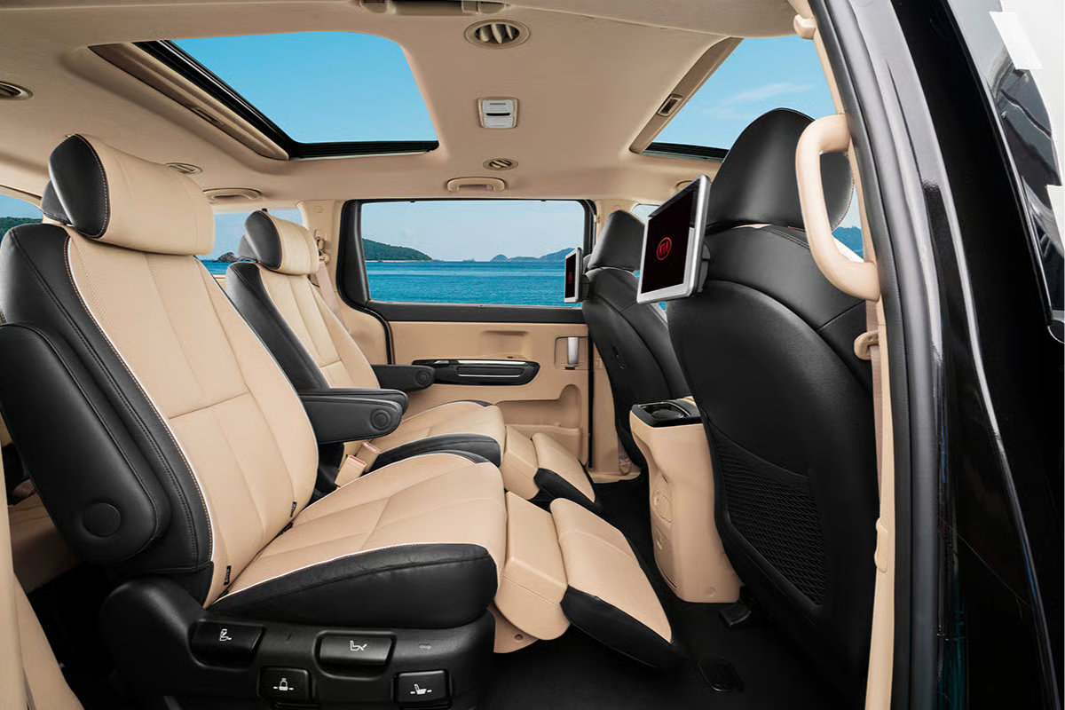 The Carnival offers 7, 8, and 9-seater options with spacious legroom, reclining seats, and premium comfort tailored for families, executives, and travel enthusiasts.