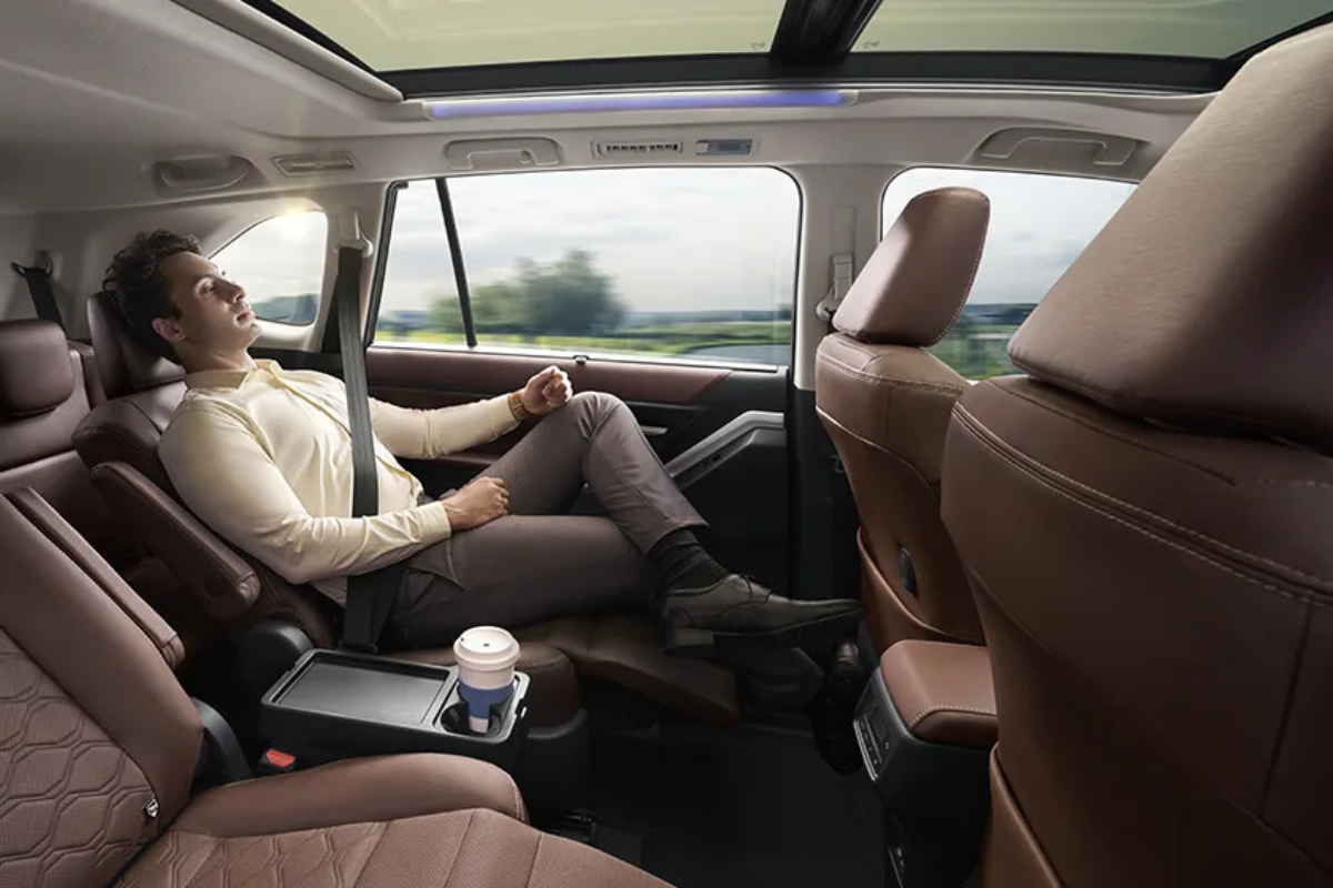 The Toyota Innova Hycross offers seating for 7–8 passengers with premium comfort, ample legroom, and flexible seating layouts suited for family and business travel.